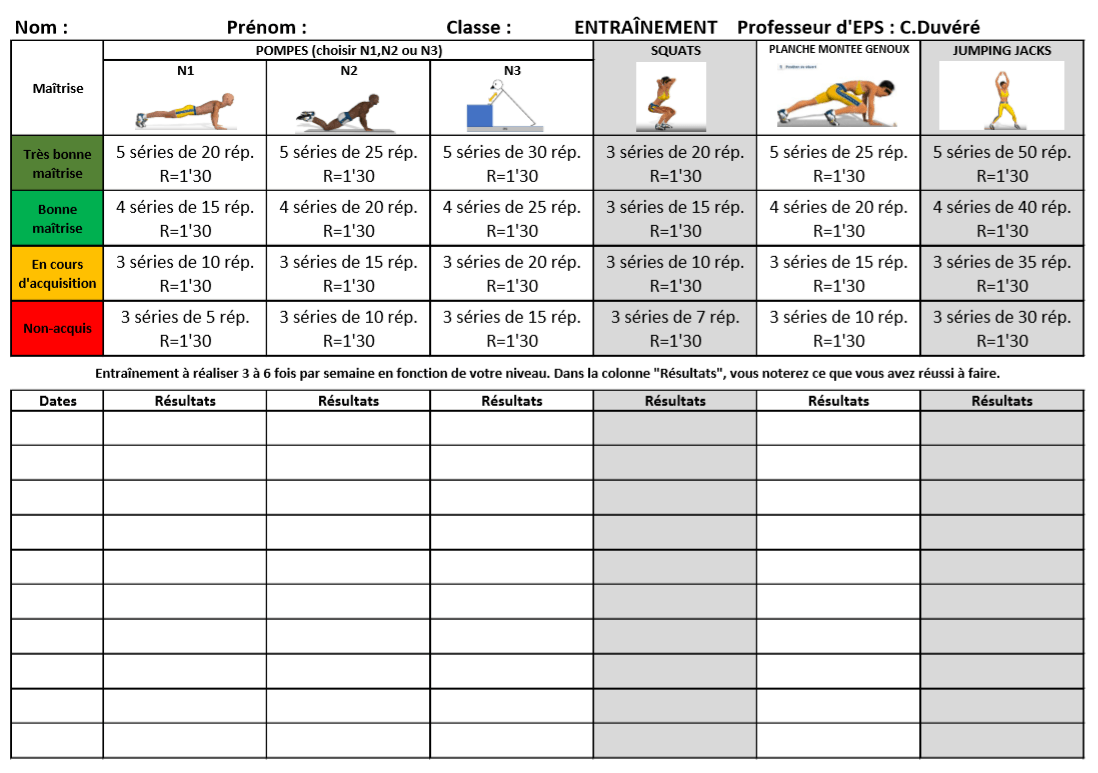 - Set up a challenge, which consists of carrying out several exercises, filming yourself and sending it to Ms. Duvéré